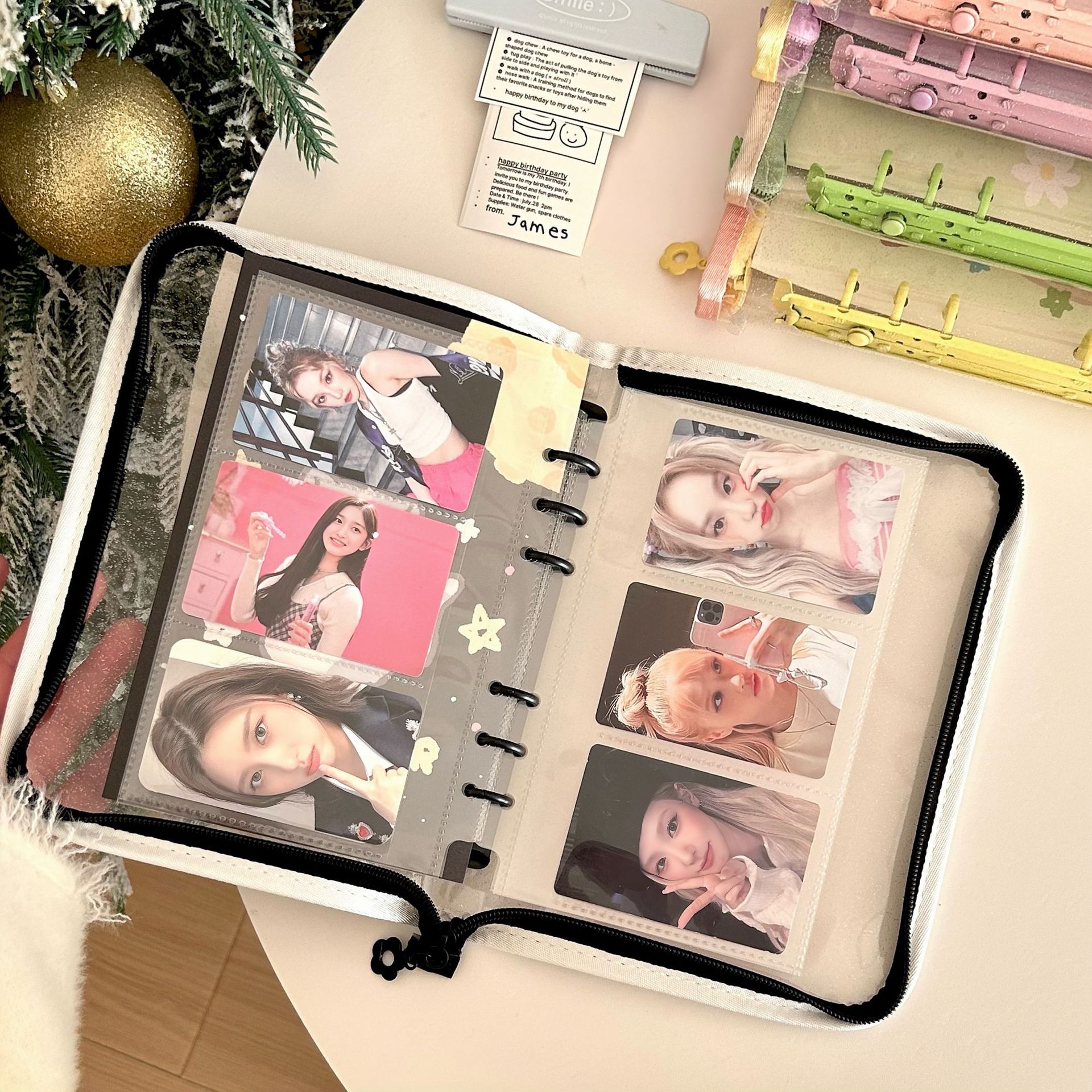 韓国ins風透明pvcジッパーバッグ縁手帳a6ルーズアルバム手帳小カード収納本