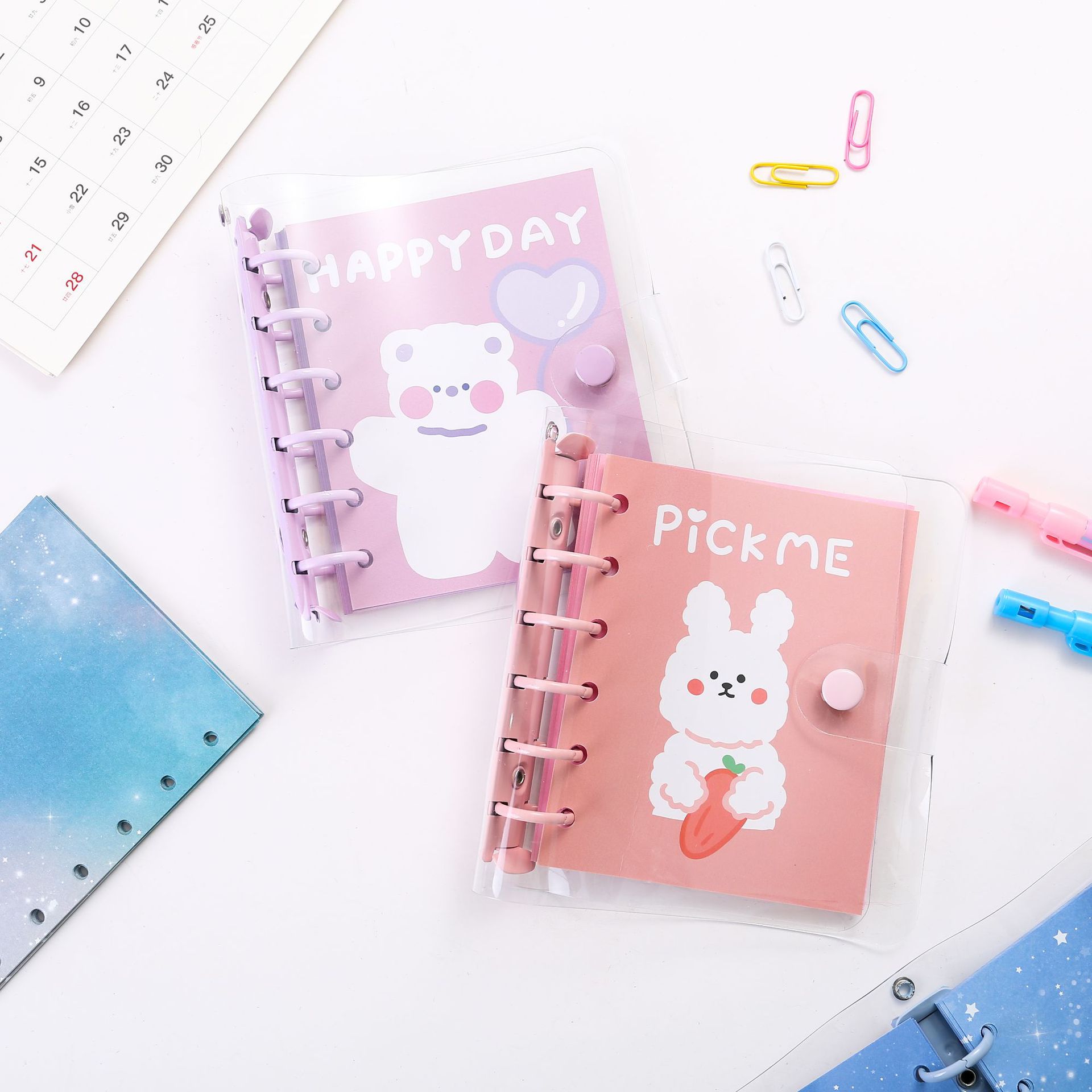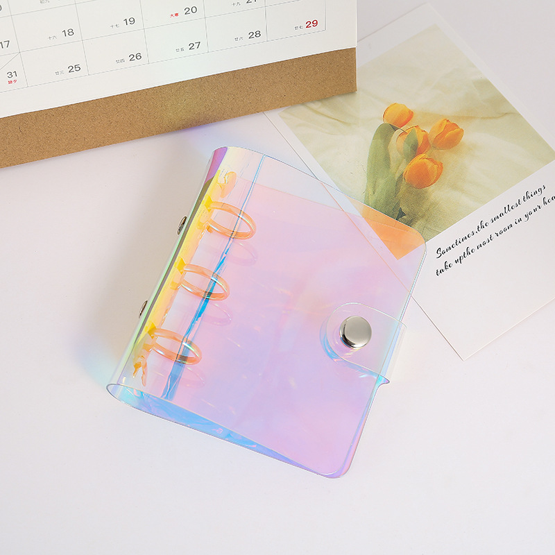 透明フラッシュ大サイズ3穴バインダー本ミニpvc透明シェル携帯バインダーコイルカラークリップ手帳