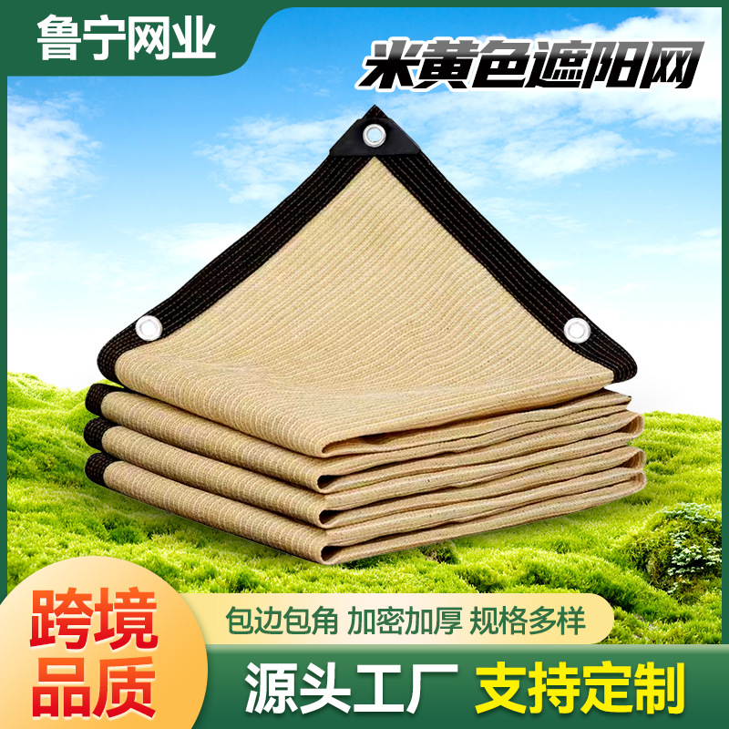 国境を越えて米黄色の日よけネットを提供して、穴を開けて帆の庭のベランダの屋外の日よけネットを遮ります。