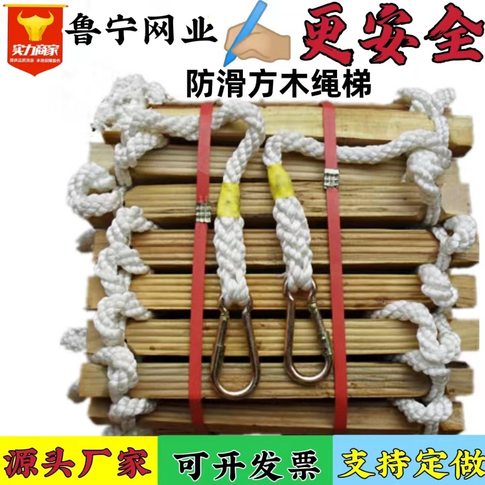 メーカー卸売り消防救助軟梯滑り止め角木丸太登山梯子工事器材ポリプロピレンロープ救命ロープ梯子