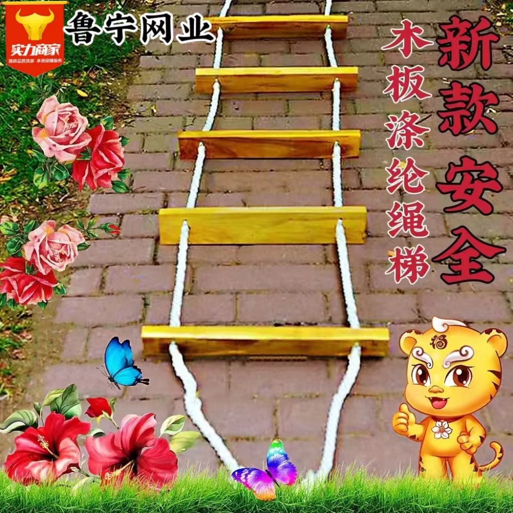 軟梯縄梯子検査軟梯家庭用滑り止め実木訓練登山梯子高所作業工程梯子救助縄梯子