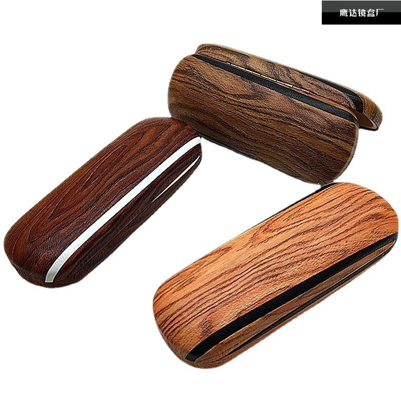レトロ木目革学生近視鏡大型メガネケースレトロ耐摩耗性ストレス携帯ファッション