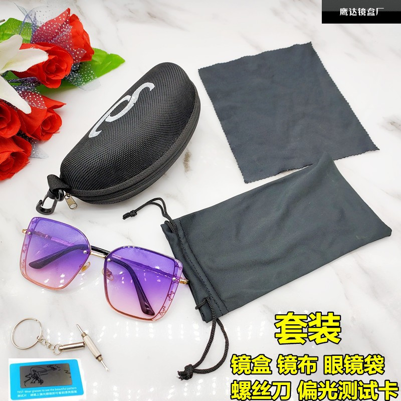 ピュアブラックオックスフォード生地EVAサングラスケース、メガネバッグ、メガネクリーニングクロス、偏光テストカード、在庫あり、迅速発送