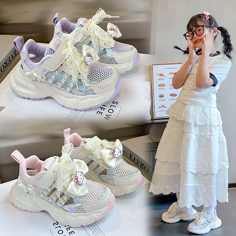 女の子フレームスニーカー 2025 夏の新子供のソフトソールお父さん靴 3-12 歳の女の子のメッシュランニングシューズ