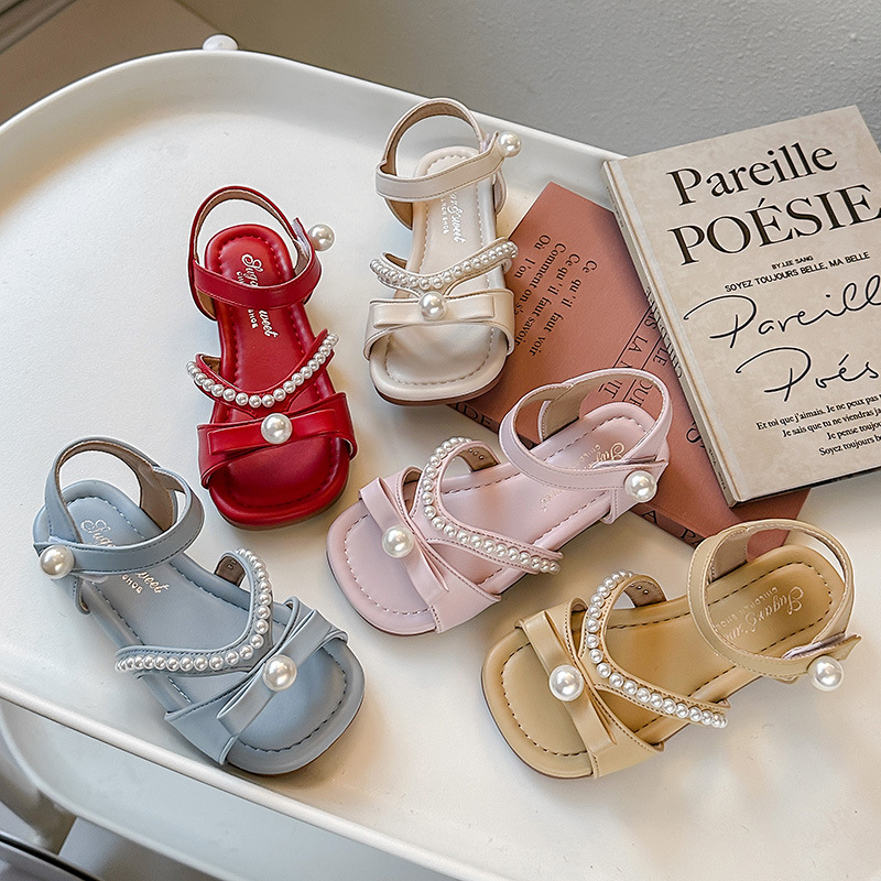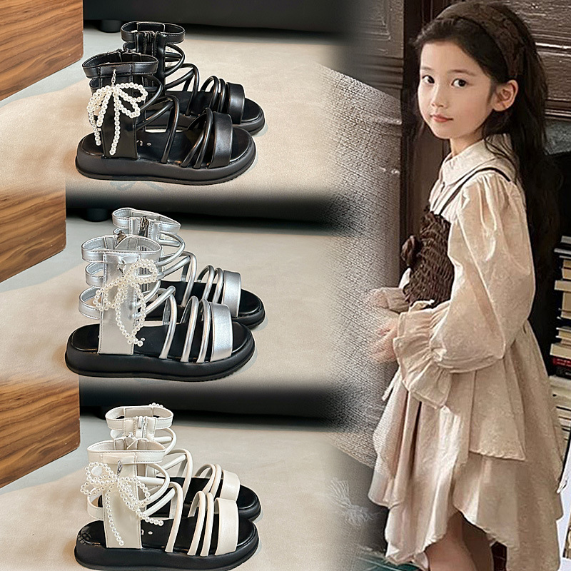 [夏] ガールズパールローマンシューズガールズオープントゥビーチシューズ2025新しい子供用プリンセスサンダル韓国スタイル