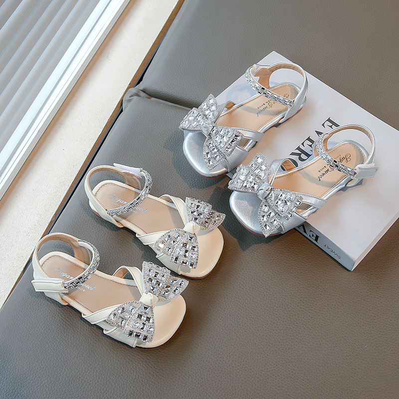 女の子クリスタルプリンセスサンダルベビーリボンファッションシューズ 2025 夏の新しい女の子オープントゥビーチシューズ韓国