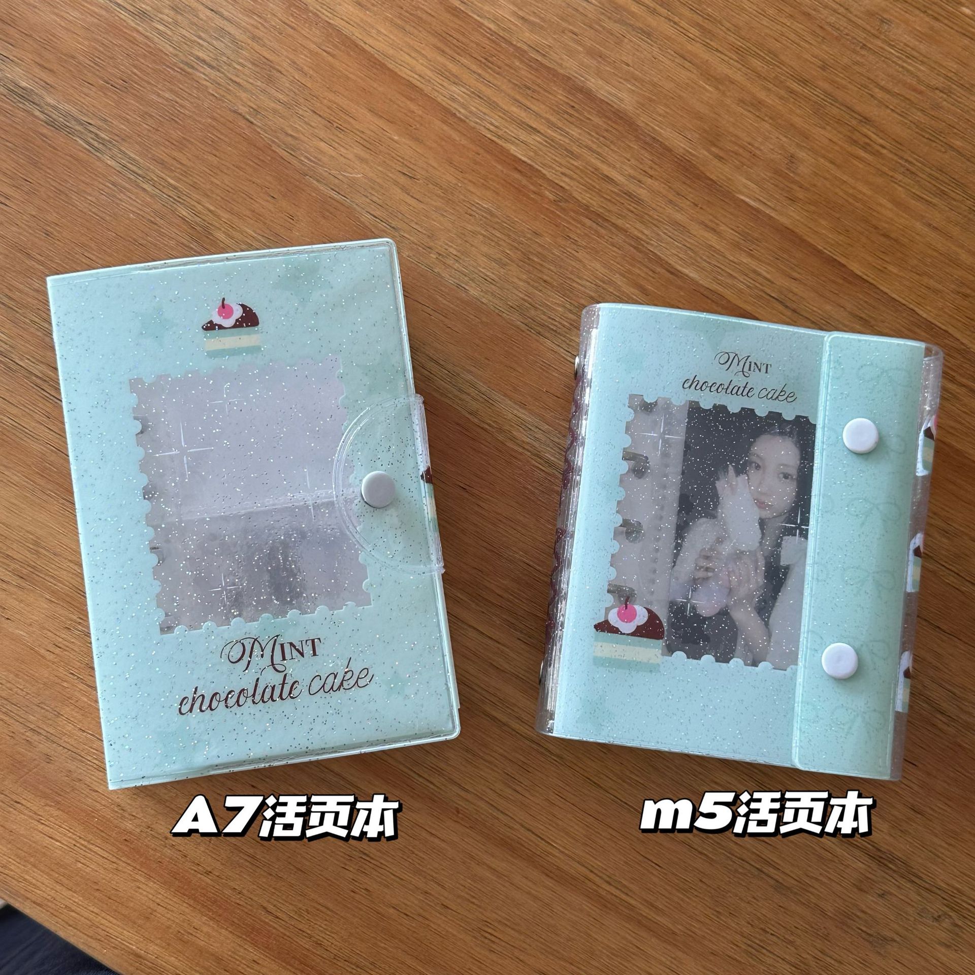 オリジナルinsミントチョコレートケーキキラキラm 5ダブルボタンバインダー手帳a 7日記帳カード帳カードケース