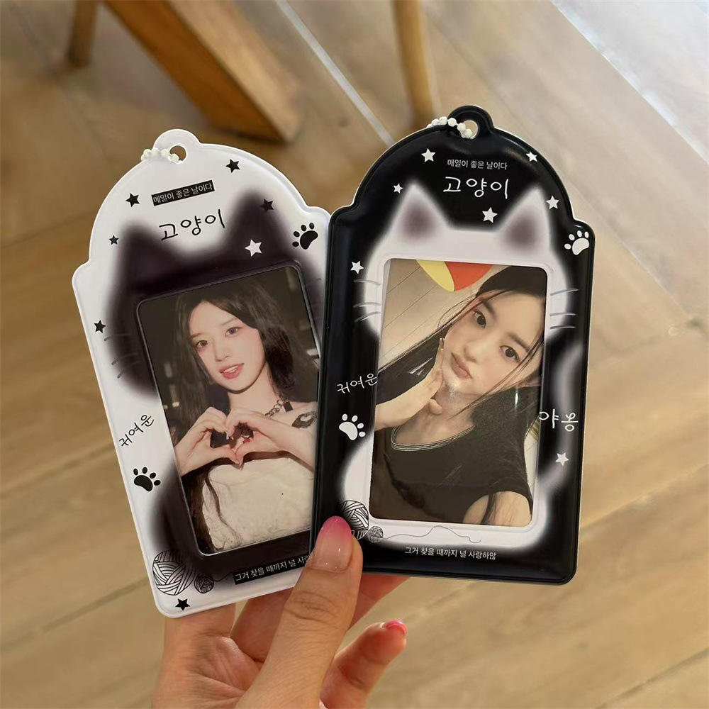 インス風かわいい白黒子猫 3inch カードホルダーポラロイドアイドルカードキャンパスカードスター追跡収納ディスプレイペンダント