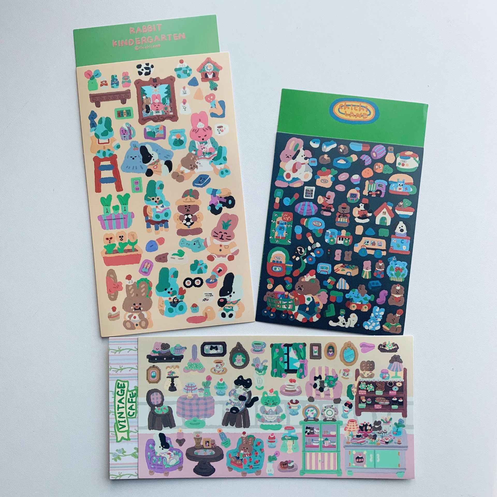 韓国insかわいいスカート子猫とチューリップ英語シールパックipad装飾シール手帳シールdiy