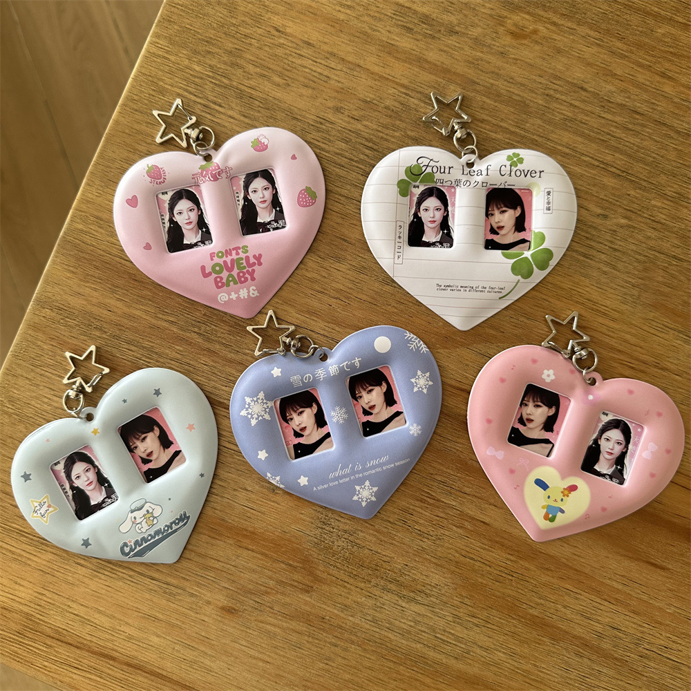 Insかわいい1インチ双格愛カードセットストラップ愛豆プリクラ証明書写真桃心キーホルダーストラップ