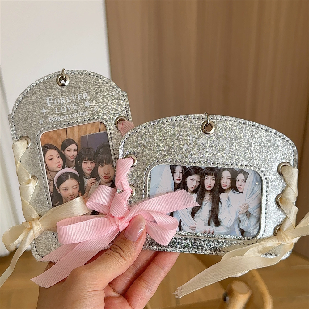 バレエリボンの銀色の革のカードカバーの3インチの写真は星の小さいカードの証明書の食事カードの学校のカードを追って収納します。
