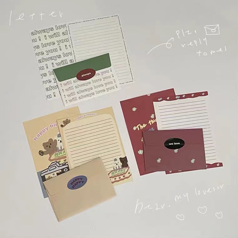 Insベーカリー熊ウサギ封筒便箋シールセットかわいいロマンチックな誕生日祝福ラブレターカップル友達
