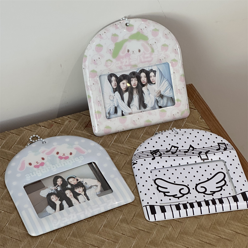 インスイチゴウサギノート横バージョン 3inch pvc カードホルダーキャンパスカード食事カードアイドルカード収納ディスプレイペンダント