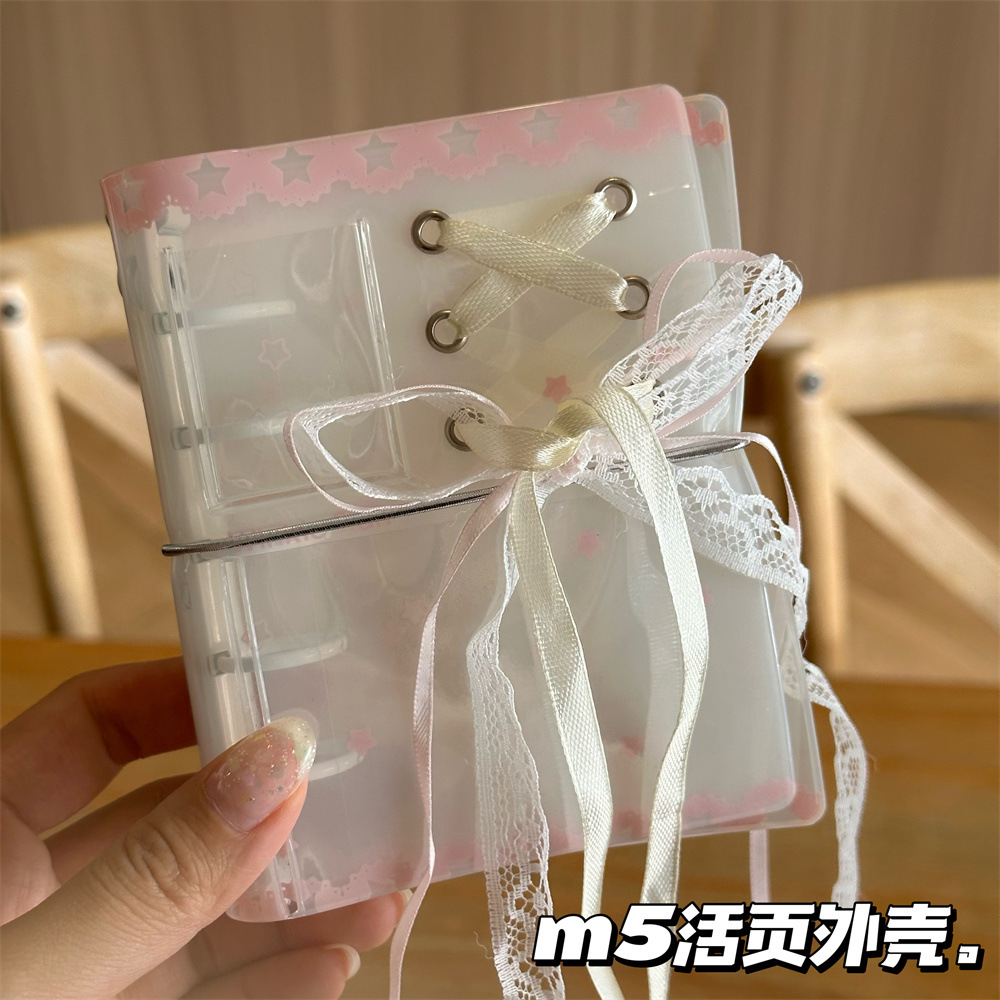 インピンクレースリボン m5 ルーズリーフノートブックソフト接着剤 pvc ストラップ日記カードブックカードバッグガールハート