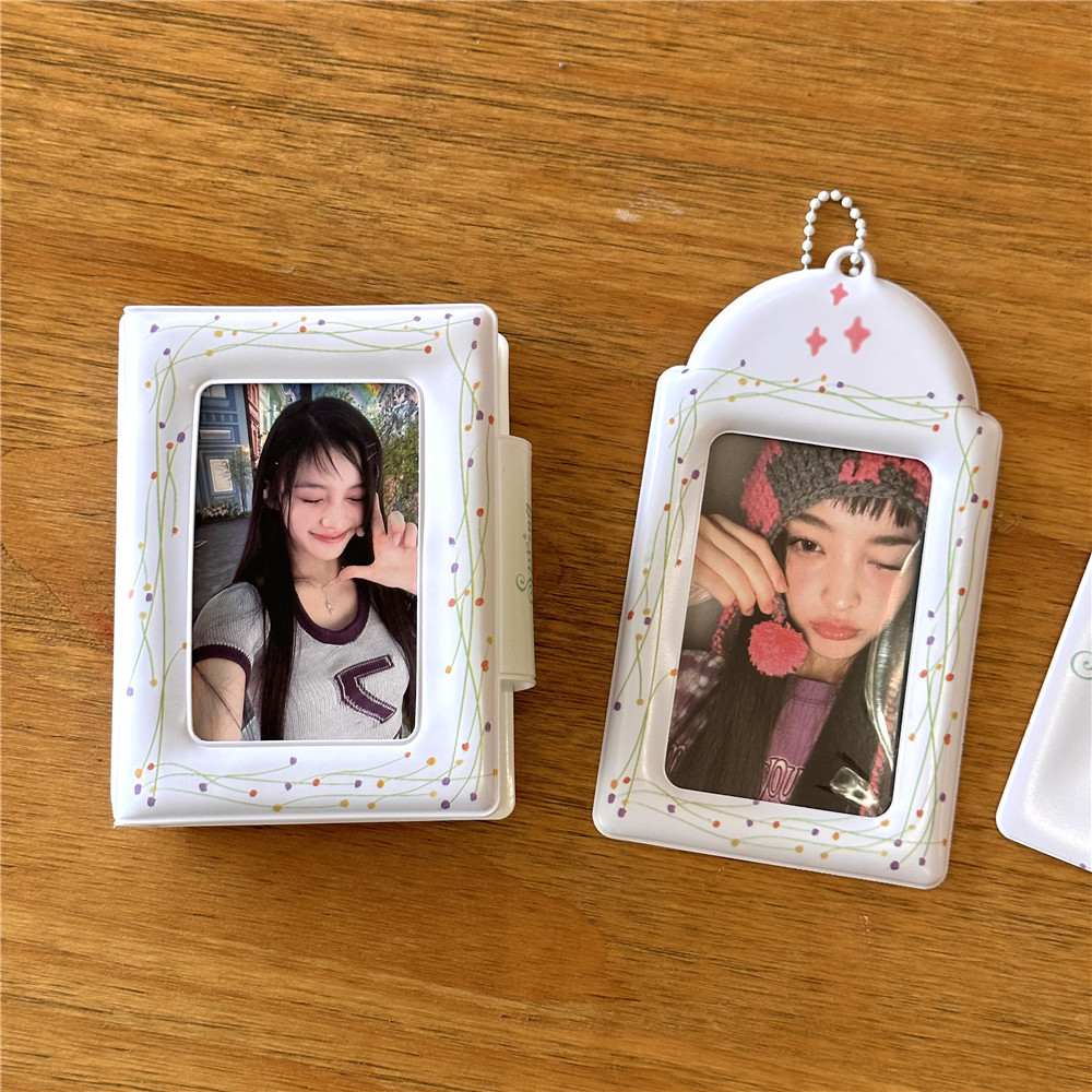 Ins爆金春の緑の小さな花の一宮格カード帳ボタン3インチのカードセット愛豆のカードバッグ