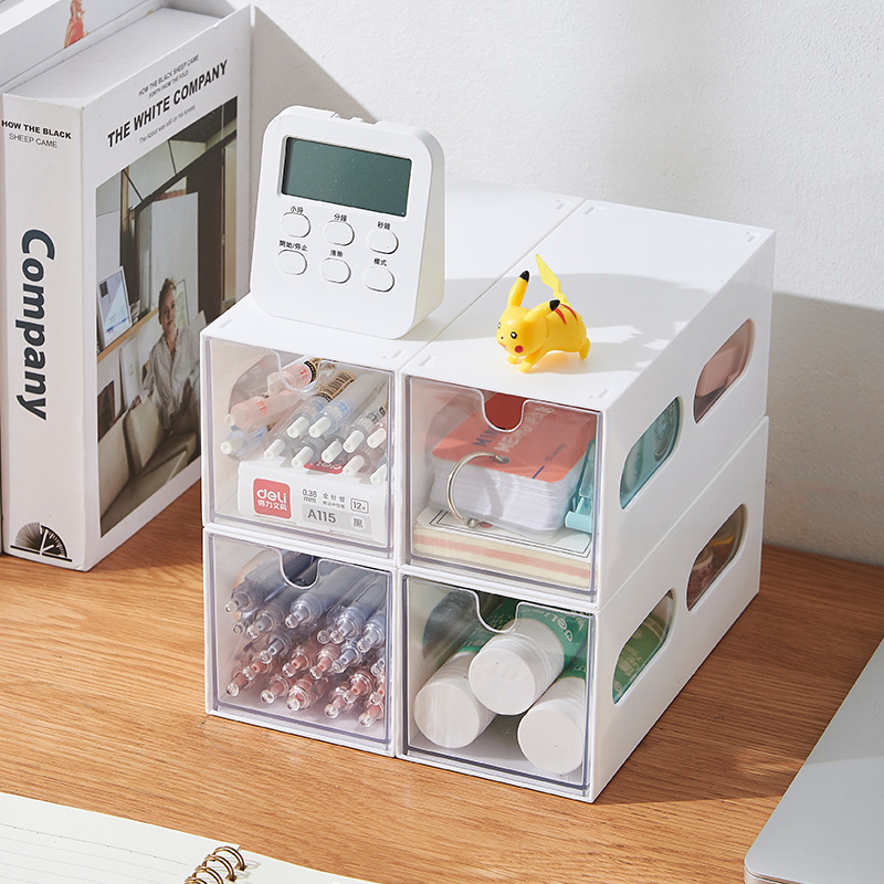 文具収納ボックスブックデスクトップテーブル化粧品引き出しタイプ卸売プラスチック透明積み重ね可能な収納ボックス