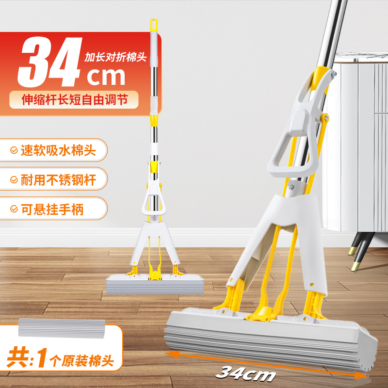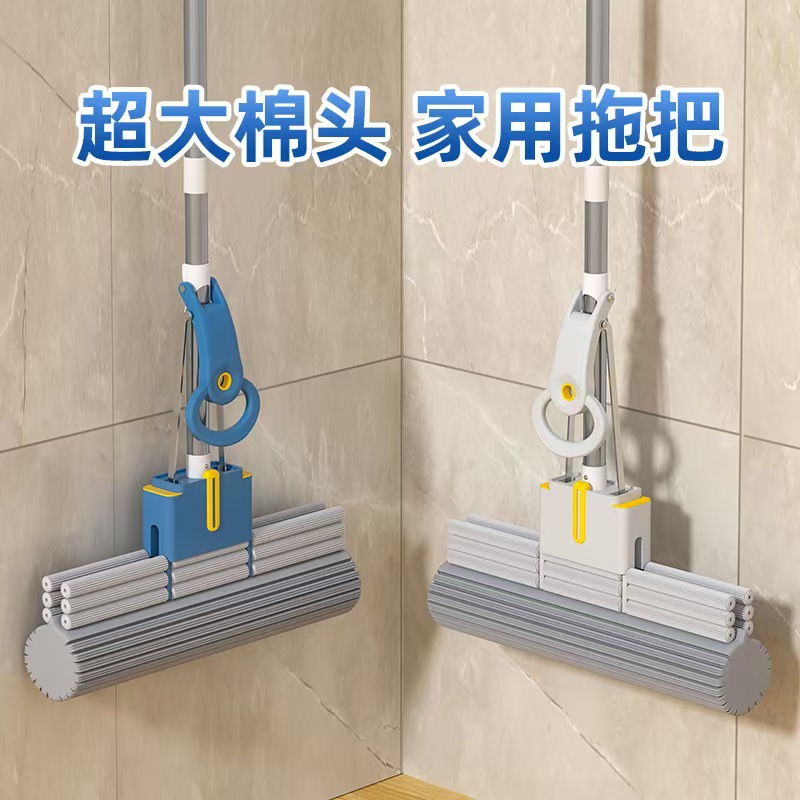 伸縮式家庭用ハンズフリーライジングコットンモッププッシュプル折りたたみ絞り水乾湿両用吸収性スポンジマジックモップ