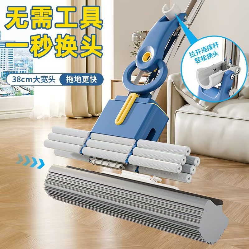 38CM大型スポンジモップ、手洗い不要、家庭用ワンモップ、乾湿両用吸水性コロイドモップ、レイジーモップ