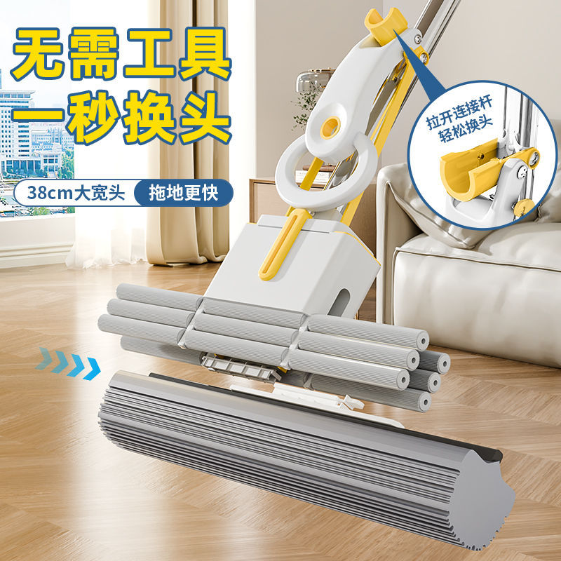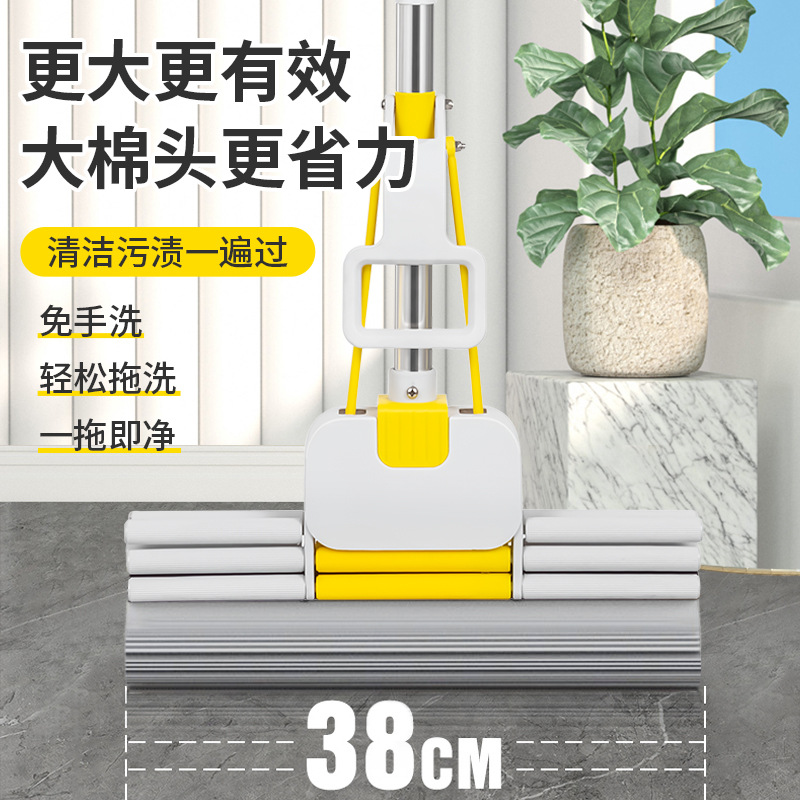 スポンジモップアーティファクト、家庭用ワンモップ、手洗い不要、怠け者用吸水性コロイドモップ、乾湿両用、ワンクリック交換ヘッド