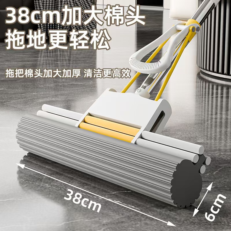 スポンジコットン折りたたみモップ、手を使わない家庭用吸収性モップ、軽量、耐久性、洗濯不要