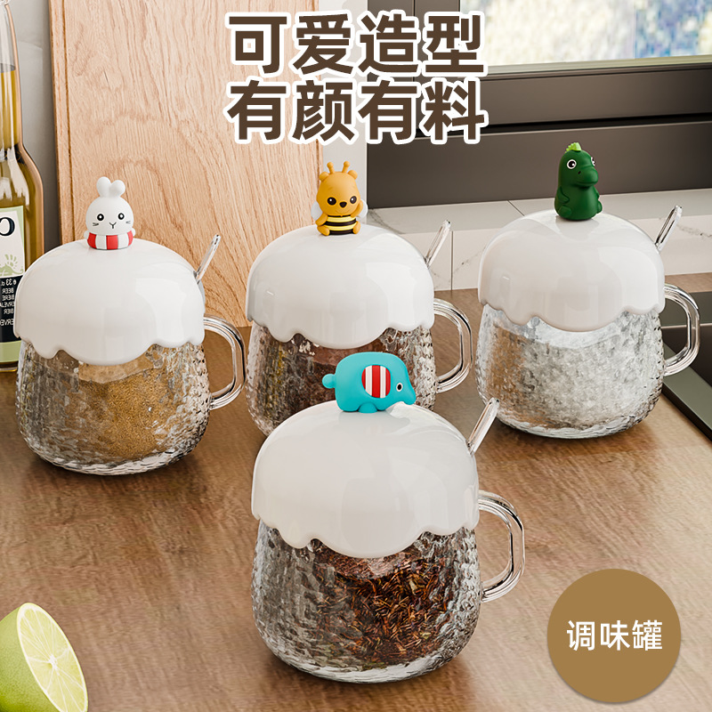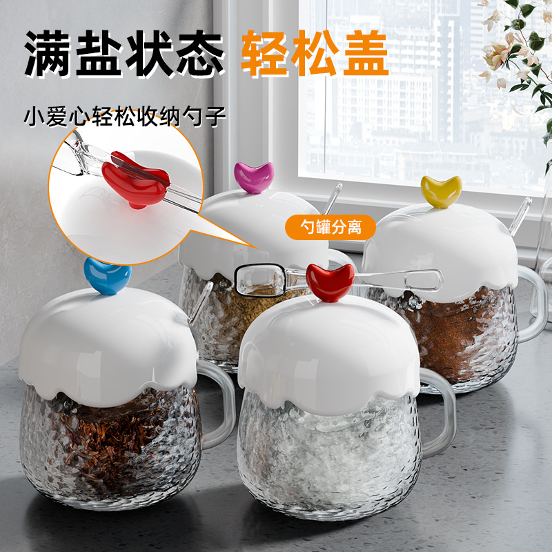 キッチン創意調味料箱家庭用組み合わせ調味料缶ガラス塩缶個性可愛い調味料瓶味の素調味料
