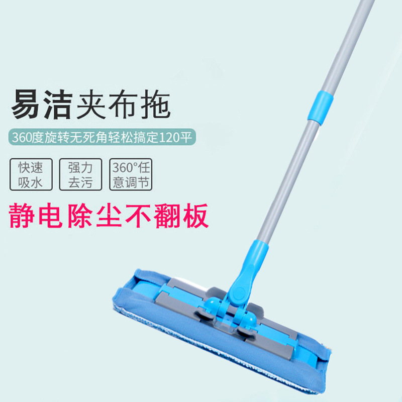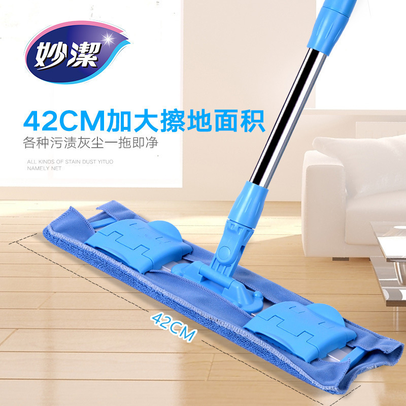 妙潔多機能クリップ布モップ家庭用木床タイルフラットキッチントイレ360度回転モップ