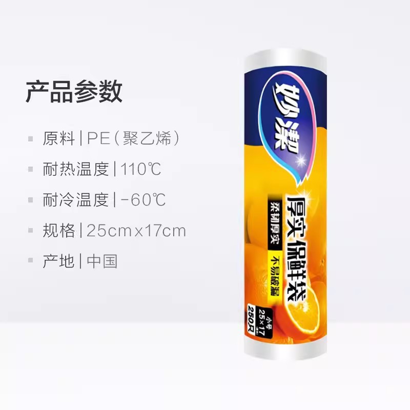 妙潔点断式厚い鮮度保持袋25*17トランペット冷蔵庫包装袋台所食品用鮮度保持袋