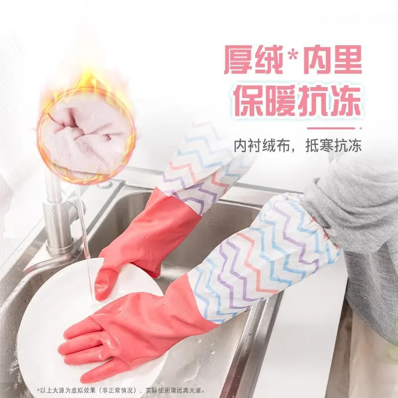 妙潔延長厚パイル手袋女性保温耐久性食器洗い洗濯ゴムラテックス防水家庭用キッチン清潔