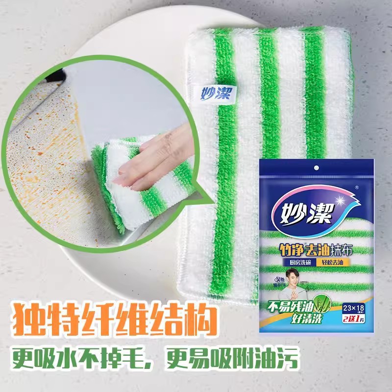 妙潔竹は油雑巾家庭用家事清潔台所用品が吸水して毛が落ちにくいので、食器タオルを3枚洗う