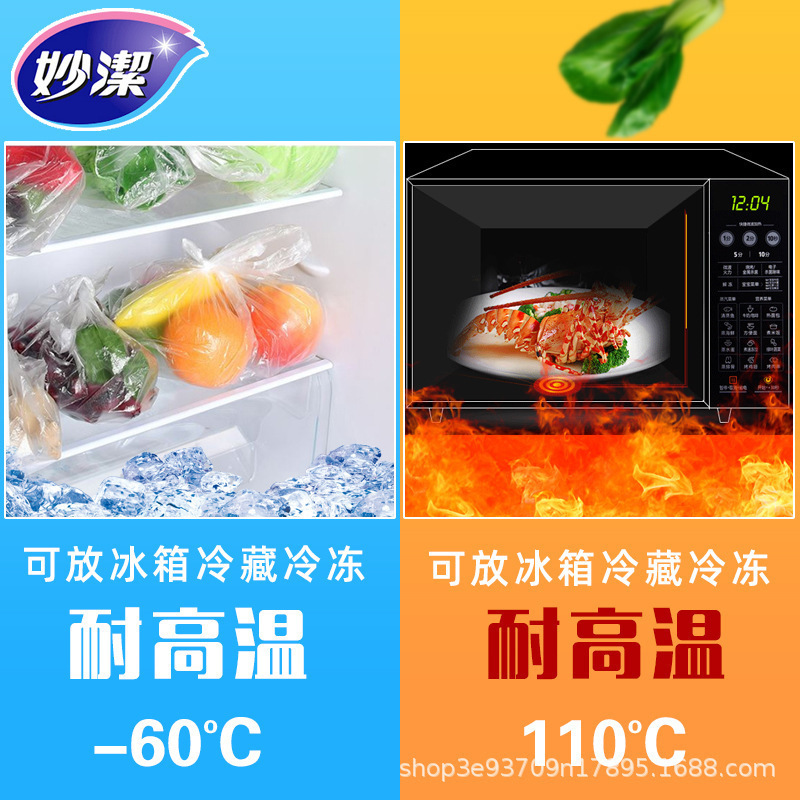 妙潔ラップフィルム使い捨てナイフなし点断式PE食品級大型キッチン冷蔵庫電子レンジ高温
