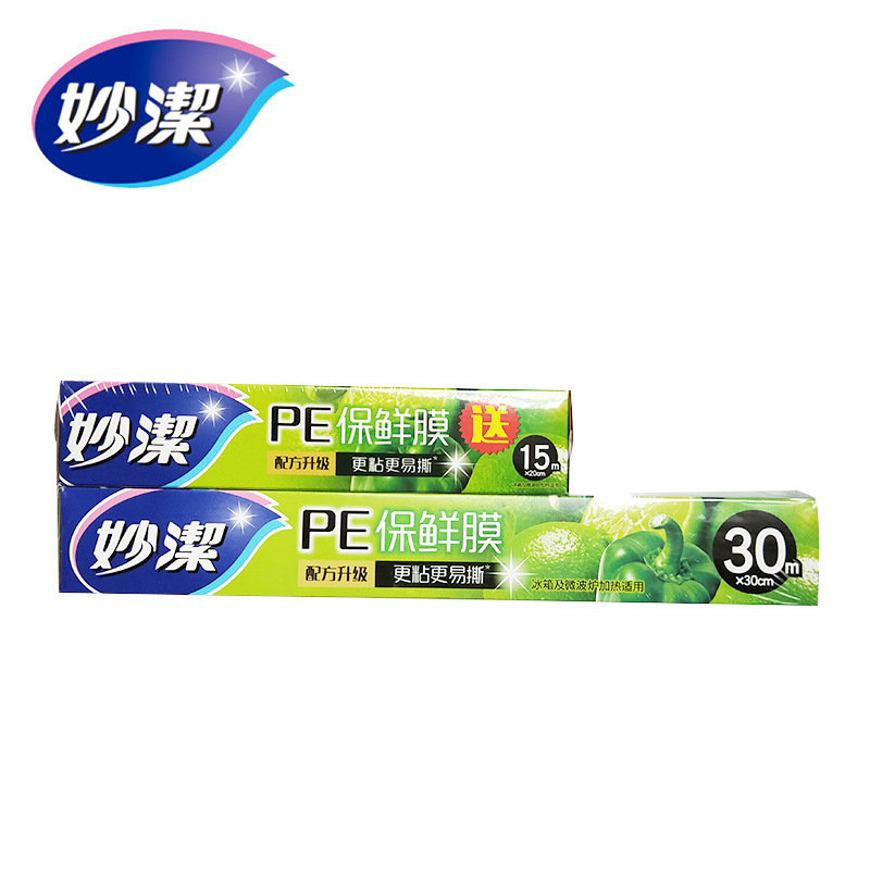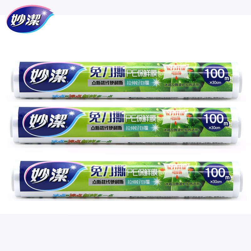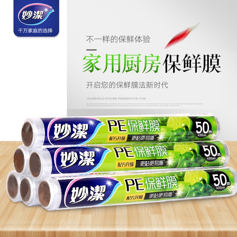 妙潔50メートルPE食品ラップ防塵包装フィルム透明家庭用キッチン冷蔵庫電子レンジ専用大巻き
