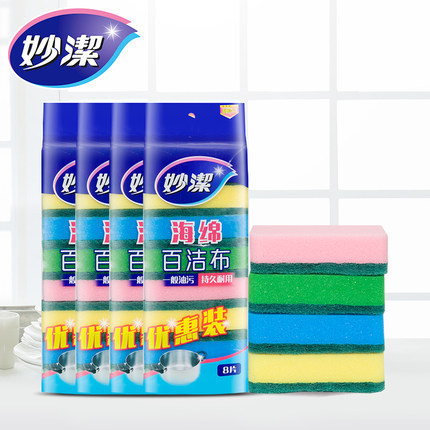 妙潔百清潔布スポンジ家庭用キッチン雑巾ブラシボウル汚れ除去油洗浄洗浄洗浄鍋両面清潔布8枚