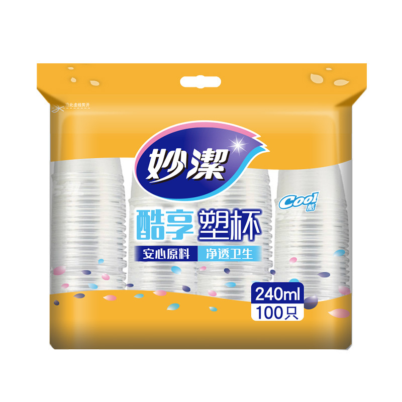 妙潔航空カップ使い捨てカップ100杯240mlプラスチックカップカップ食品用円形プラスチックカップ