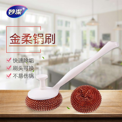 妙潔ブラシ鍋神器厨房家庭用ステンレス鋼線球は長い柄のブラシを持っています。