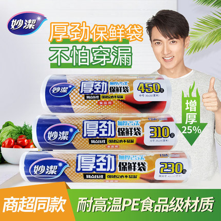 妙潔厚力シリーズ鮮度保持袋点断式食品家庭用ロールアップキッチン食品包装袋密封袋PE級