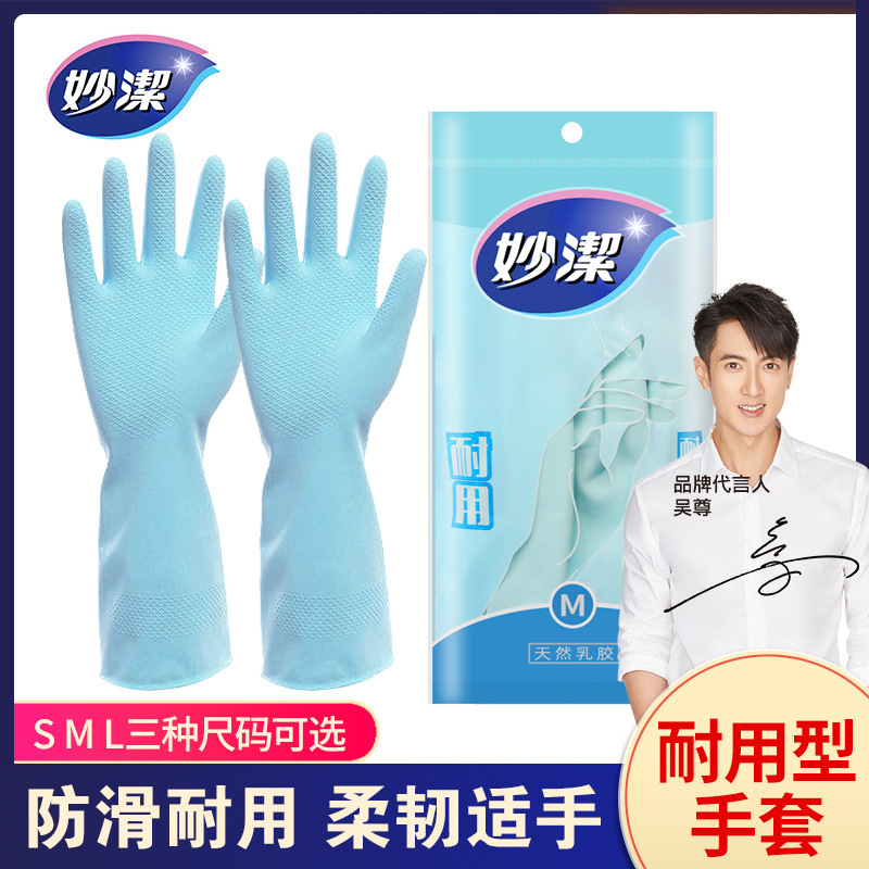 妙潔ベルベット保温ラテックス手袋皿洗い家事手袋防汚純色耐凍ゴム手袋