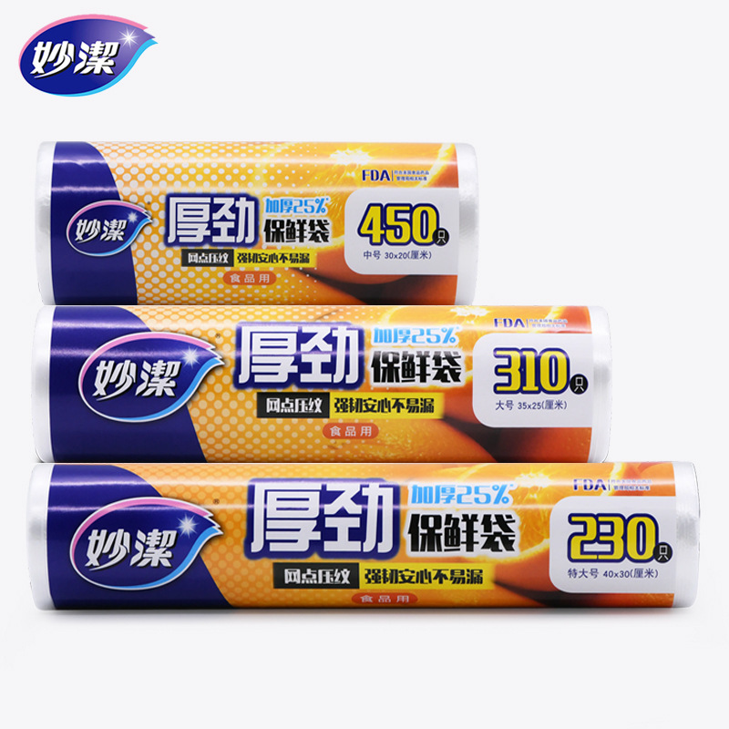 妙潔厚力断式PE鮮度保持袋手裂きビニール袋冷蔵庫袋厚手家庭用収納冷蔵庫食品用