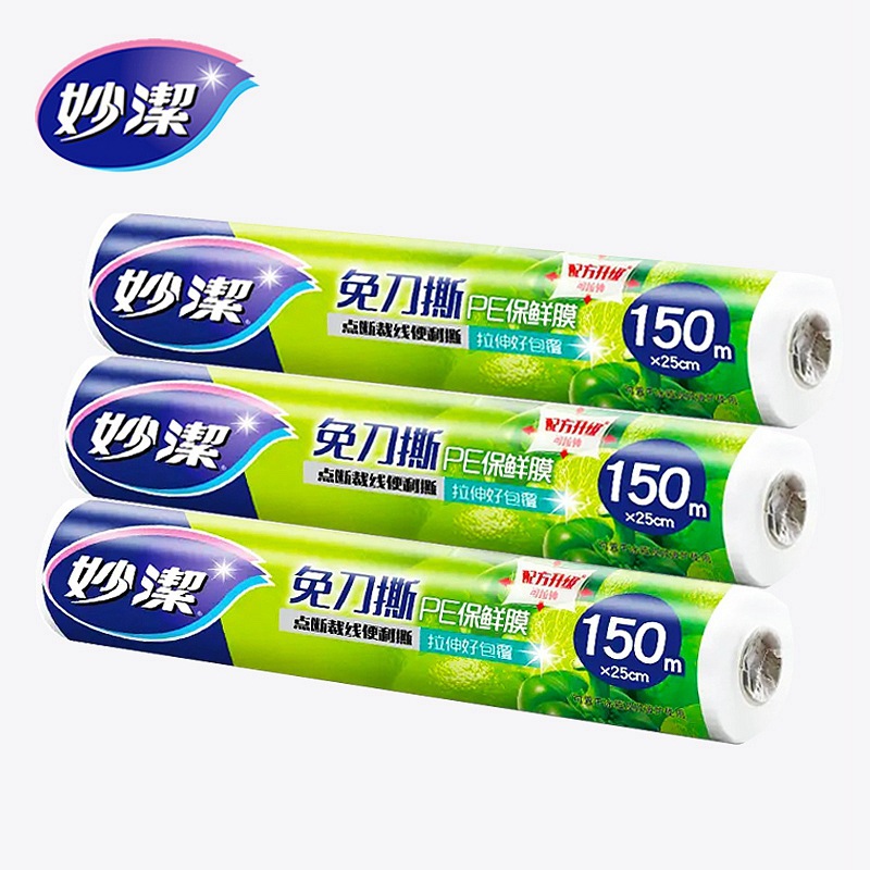 妙潔無刀裂大巻食品用点断式ラップ家庭用キッチンは高温で25*150メートル冷蔵できる