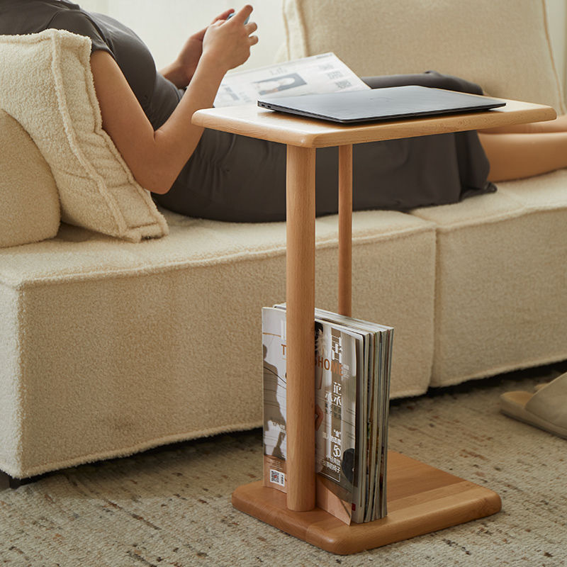 リビングルームサイドテーブル、小さなコーヒーテーブル、ベッドサイドテーブル、レトロなC型ソファ、ミニコーナーテーブル、ウォールナット色の取り外し可能な収納ラック