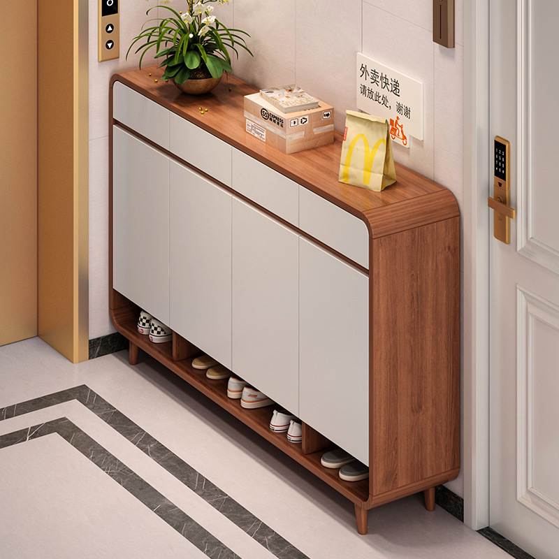 下駄箱の小戸型の棚は家庭の入り口に入って玄関の戸棚の一体の実木色のロッカーの室内の靴棚に入ります。