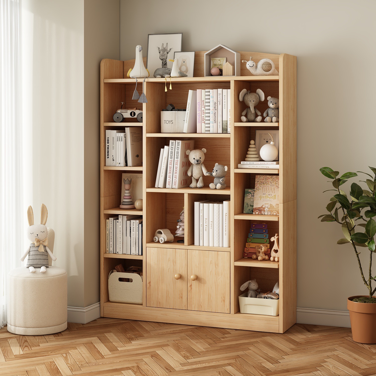 実木本棚が床に落ちて物置棚の客間が一体になって壁の戸棚に寄りかかっている簡易ロッカー家庭用子供が本棚を読む