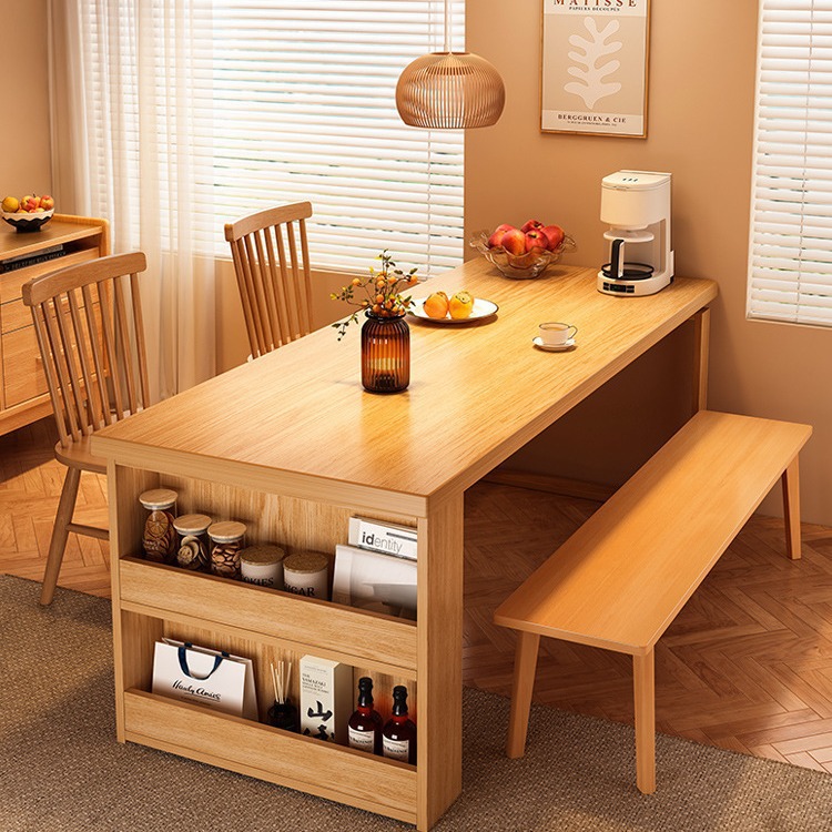 実木食卓一卓四椅子組合せ家庭用小戸型賃貸住宅用大型テーブルサイドキャビネット一体物置食卓