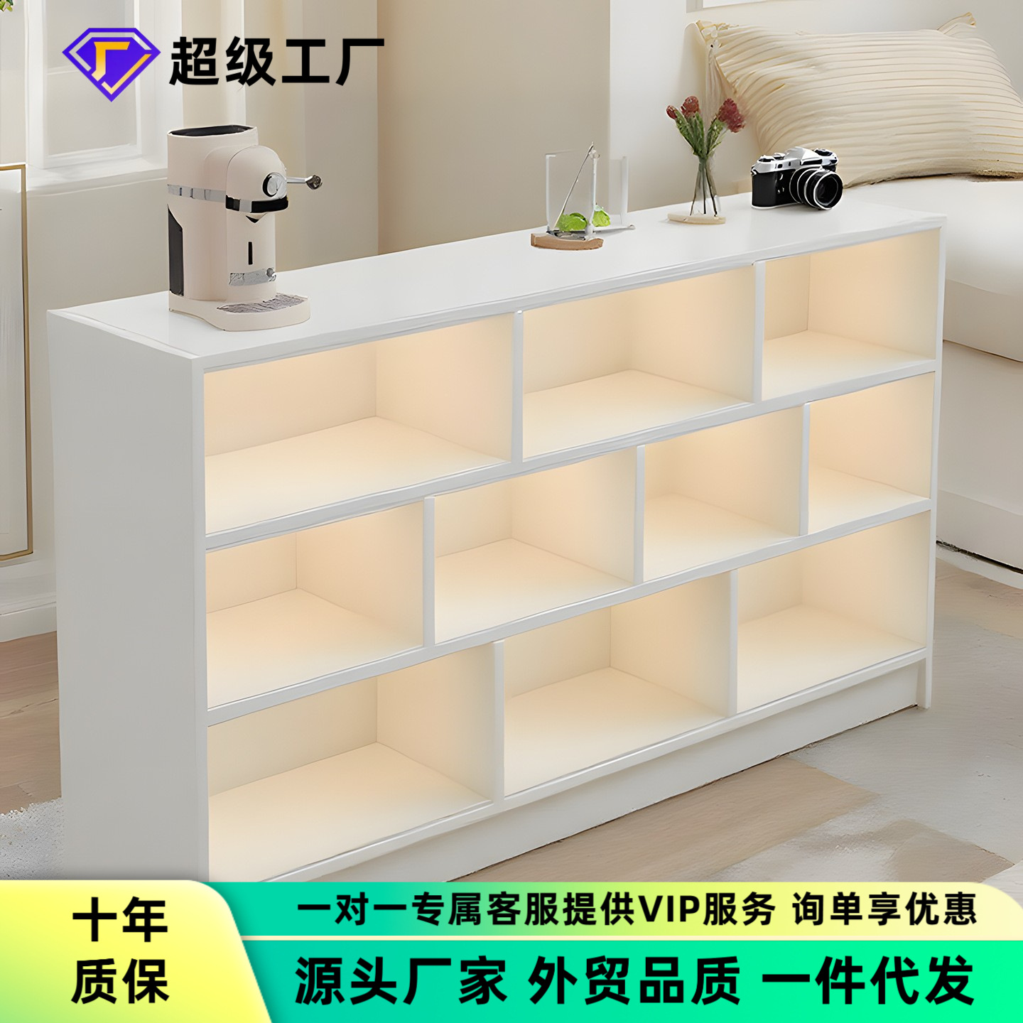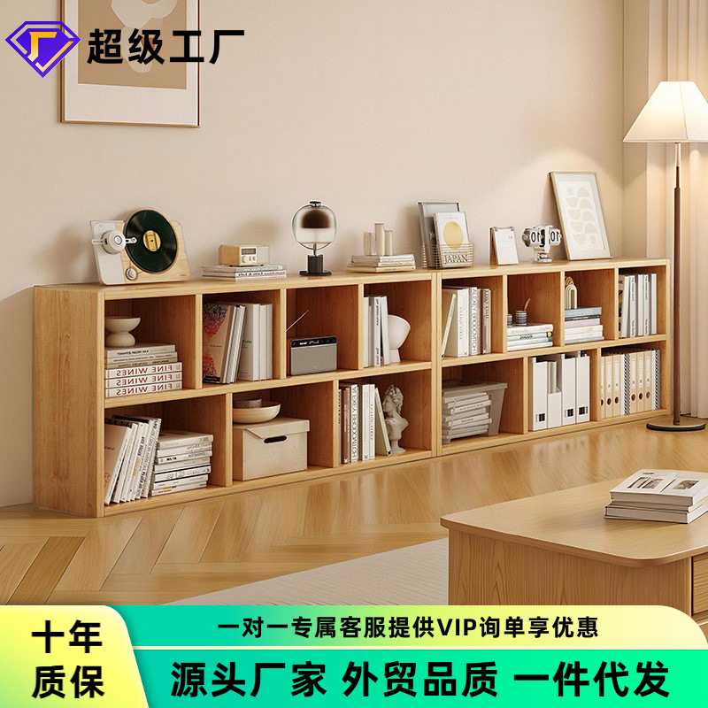 実木格子本棚床置き棚家庭用本棚客間自由組み合わせ多層収納低い戸棚
