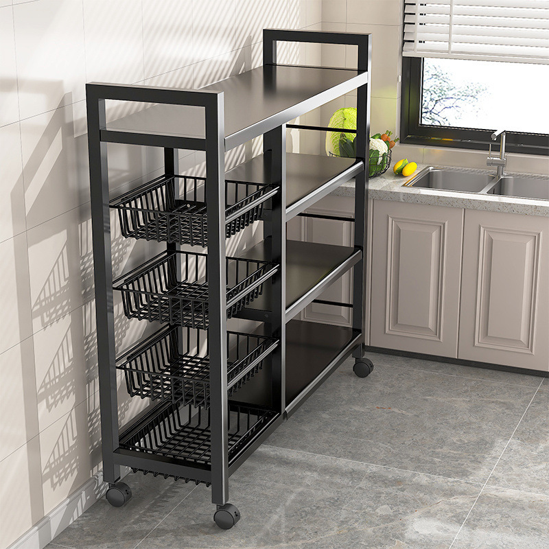 台所の物置棚が着地した多層野菜収納棚家庭用多機能野菜バスケットは壁に寄りかかっています。