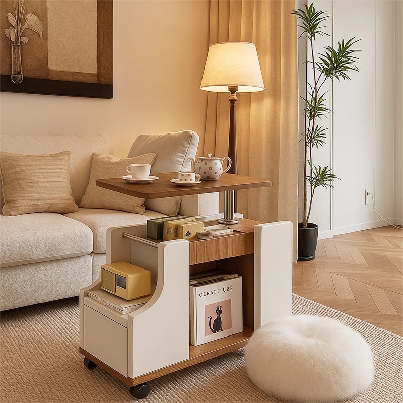 ソファサイドキャビネットサイドテーブルリビングルーム2025新しい可動回転ティーキャビネット家庭用多機能収納キャビネット