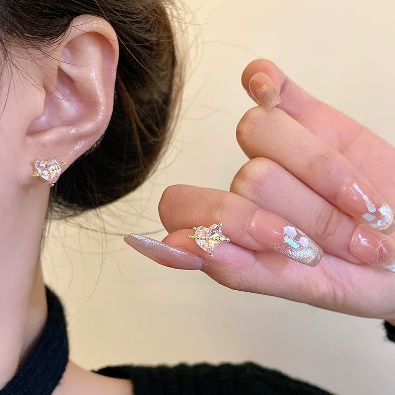 日本と韓国の甘い女の子の愛のイヤリングハイエンドピンクジルコンハート型イヤリングシンプルなイヤリング工場卸売