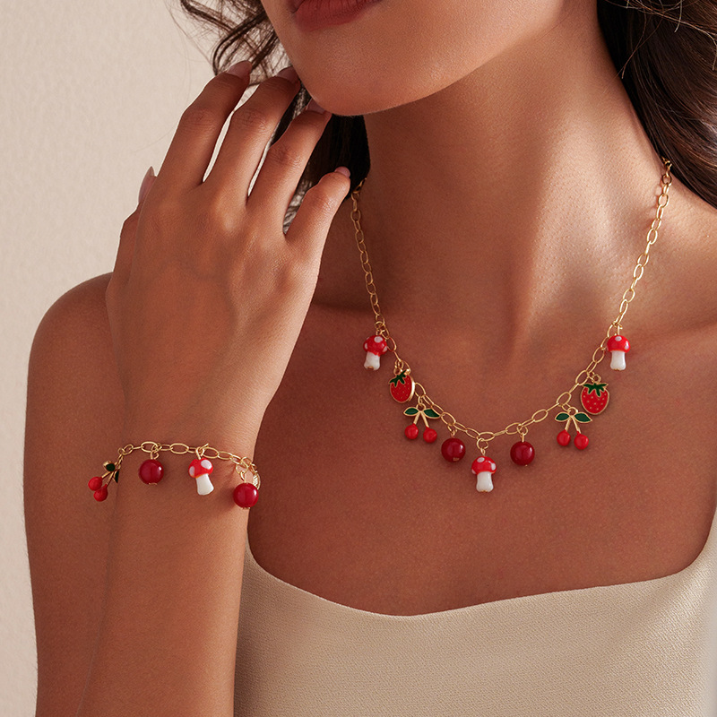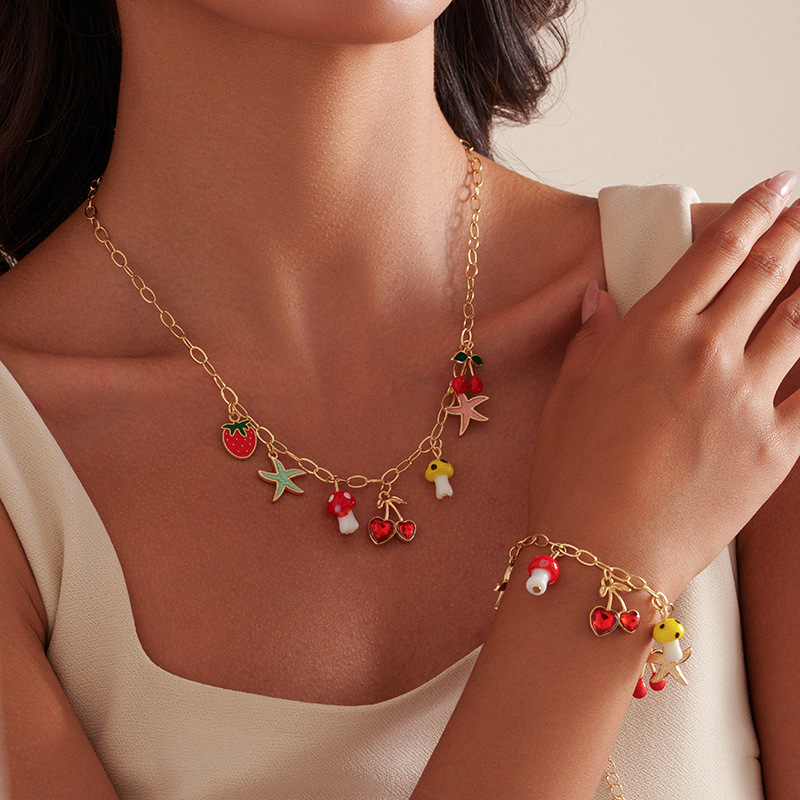 ヨーロッパとアメリカの国境を越えた売れ筋ヒトデネックレス/ブレスレットセット女性用キノコイチゴチェリーパーソナライズされたファッション供給卸売