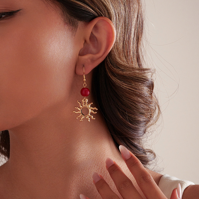 DIY ジュエリーひまわりペンダント耳フッククロスボーダー新しいレトロ中空イヤリングファッションパーソナライズされた天然石イヤリング