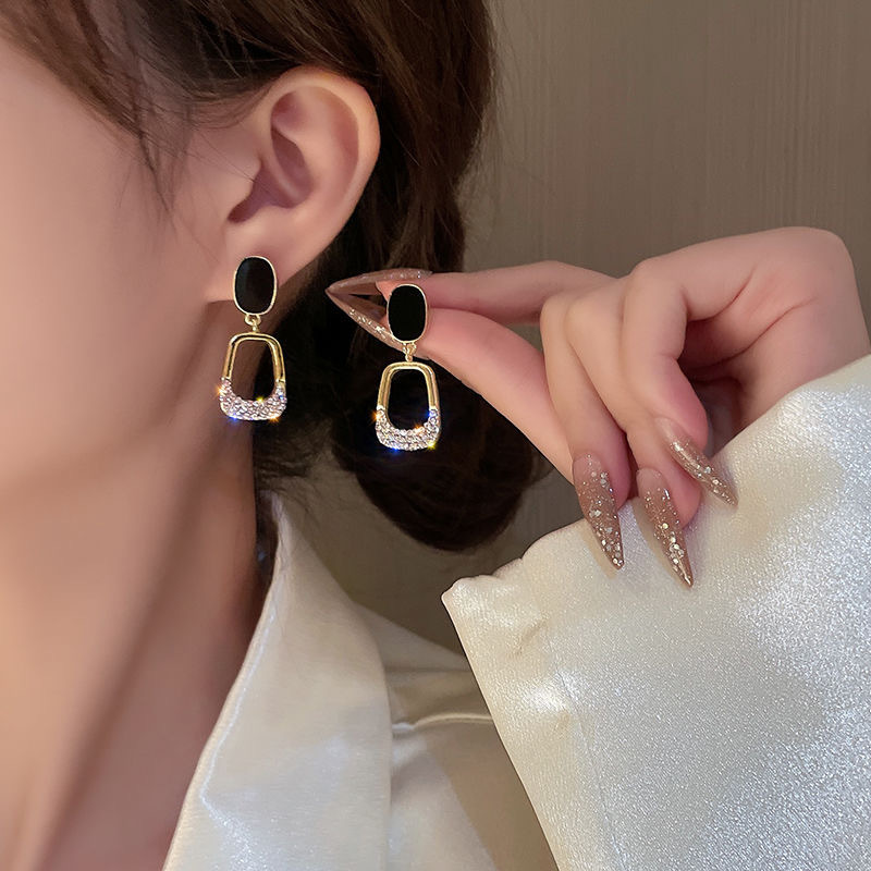 創意独特デザイン透明水晶半円ピアス小衆デザイン角型砕銀耳飾り2023年新作ブーム