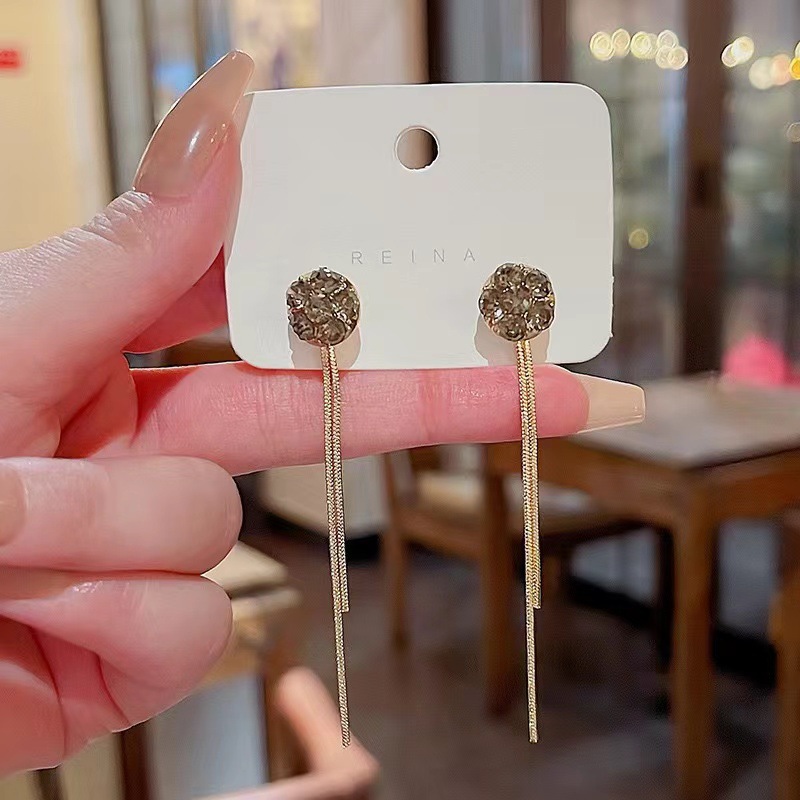 フランスの優しさの長いダイヤモンドの円形のピアスの女性のファッションの新型の1項の2項はフリンジの気質のイヤリングの装飾品をつけます。